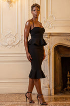 The Athena Peplum Midi is your structural weapon for high-stakes events. It doesn't just fit your body; it reconstructs it. By combining a vintage couture peplum with modern high-compression fabric, it engineers a dramatic, proportional balance that turns your silhouette into a masterpiece.