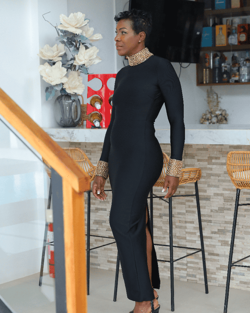 Golden Beading (Mock Neck & Cuffs), Backless (Inferred)